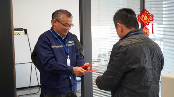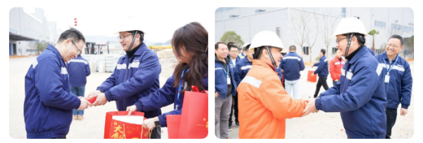 在宁乡产业基地,每个人脸上都洋溢着幸福的微笑,各车间、厂区、部门的每位员工都收到了来自公司领导的新年祝福和开工红包。公司领导与大家亲切交谈,并对春节期间坚守一线的同事表示衷心的感谢。新的一年,宁乡产业基地全体员工将精益求精、变革创新,持续推动公司高质量发展。