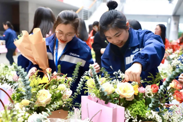人间最美三月天,春花烂漫展新颜。铜仁(上市主体)产业基地今天举办了主题为“巾帼力量,绽放别样芳华”三八女神节系列活动。现场浪漫的洛神玫瑰、温暖的粉色康乃馨、鲜艳的多头玫瑰摆满了桌子,芳香弥漫,春意盎然,吸引了在场及过往同事们纷纷驻足拍照分享。
