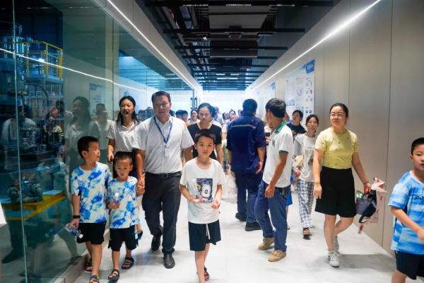 在taptap点点官网全球研发中心,小朋友们近距离参观了中控室、检测室、量试车间等,一双双充满好奇的眼光,跟随着探索官的讲解努力地吸收知识,对新能源材料的产品研发过程有了一个初步的认知。