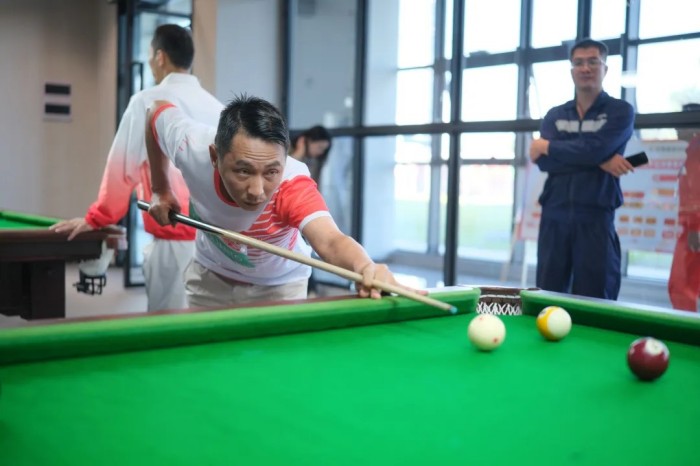钦州产业基地副总经理张云鹏为台球获奖选手颁奖